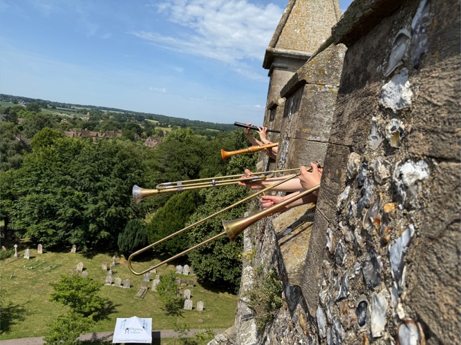 We had plenty of youth: Gesualdo Six and Apollo's Cabinet kicking off the first Friday. Iestyn Davies had kindly given up his Glyndebourne day off to mark Gibbons' anniversary with Fretwork. We couldn't believe how he sang so softly with the viols! I Fagiolini split into four to bring us Roman multi-choir music not heard in the last few hundred years and throughout that first weekend the north German wind band - Hanse Pfeyfferey - fanfared us on shawm, slide trumpet and sackbut as you got out of your cars, but also at several school workshops and even from the top of Wye church.
